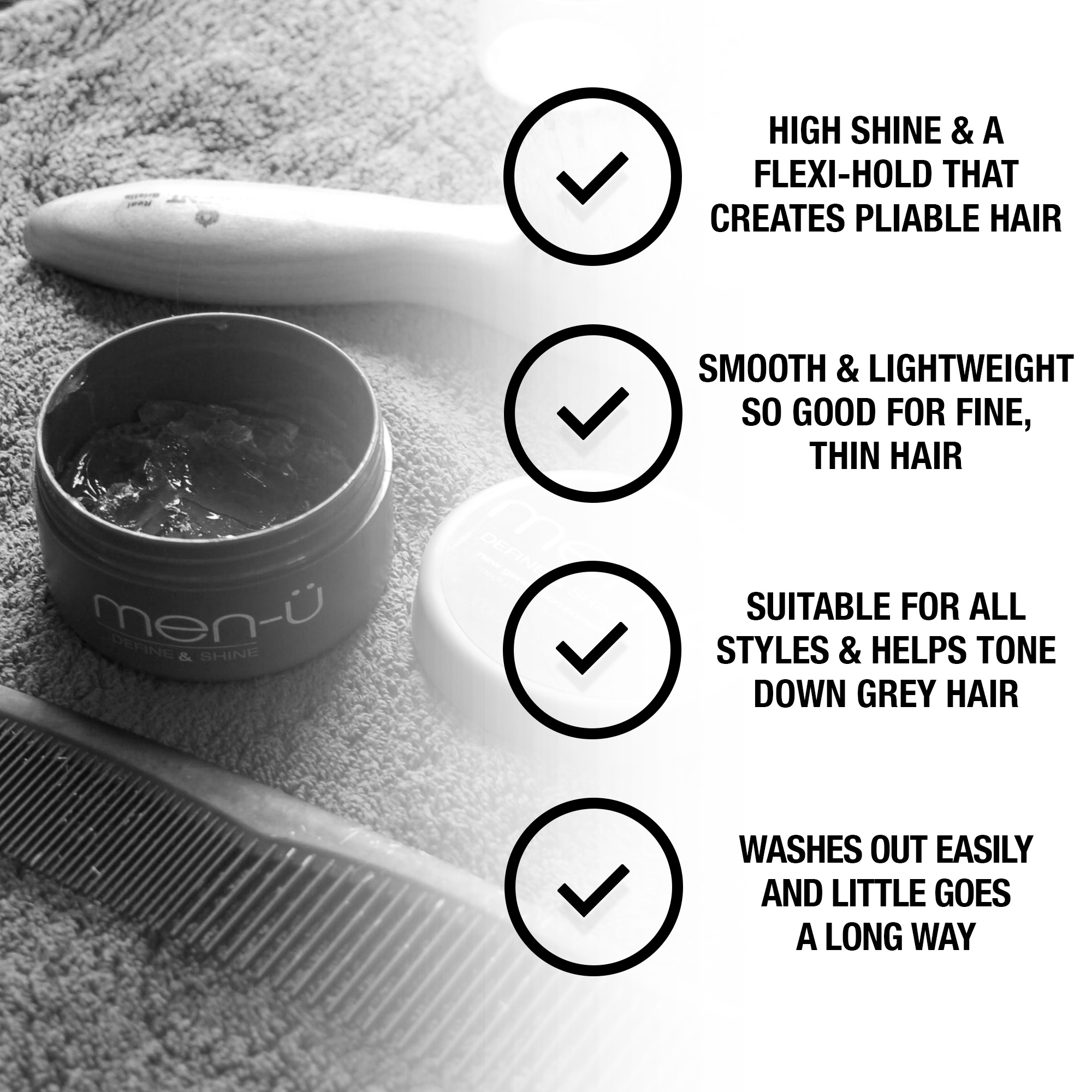 Achieve a sleek, polished look with men-ü Define & Shine, a unique styling formula that delivers high shine and flexible hold for hair that stays pliable and touchable all day. Whether you’re going for a sharp, defined style or something more relaxed, this product provides smooth control without stiffness or stickiness.