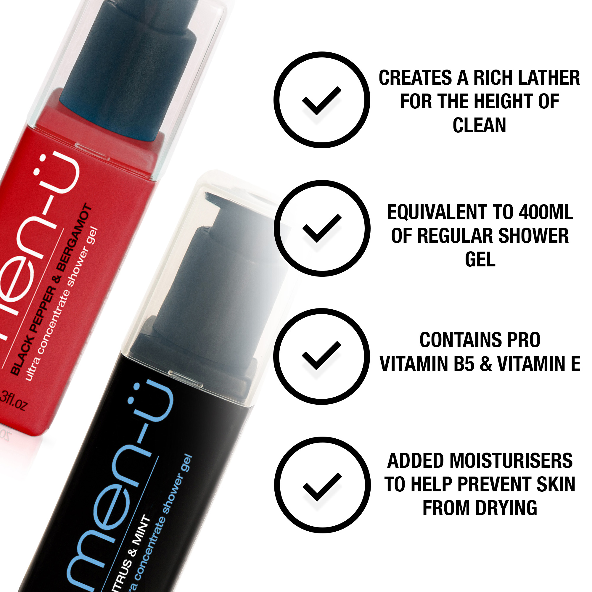 Black Pepper & Bergamot Shower Gel 100ml: Aqua, Ammonium Lauryl Sulfate, Sodium Laureth Sulfate, Cocamidopropyl Betaine, Glycerin, Panthenol, PEG-7 Glyceryl Cocoate, Parfum, Sodium Chloride, Polyquaternium-10, Sodium Benzoate, Tocopheryl Acetate, Benzoic Acid, Benzophenone-4, Tetrasodium Glutamate Diacetate, Linalool, Limonene, Sodium Hydroxide, Citronellol, Coumarin, Citric Acid, Sodium Acetate, Isopropyl Alcohol, CI 42090, CI 14700.